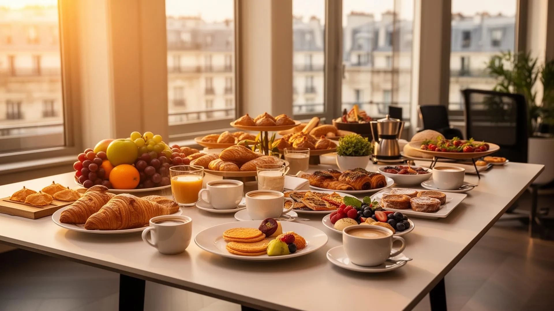Idéal pour bien démarrer la journée de vos équipes ou accueillir vos collaborateurs dans un cadre convivial. Viennoiseries, fruits frais, jus pressés et boissons chaudes.